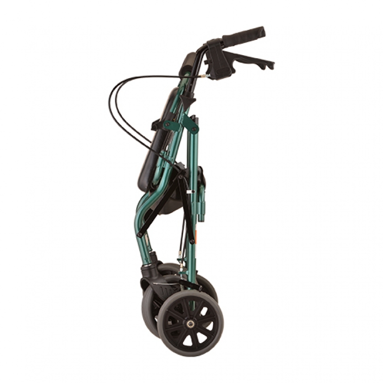 Its narrow frame can fit through a range of spaces, and the eight-inch all-terrain rubber tires are long lasting and made for indoor and outside use. This rollator comes with a great deal of storage area, consisting of a basket, zippered pouch, and a tray, but does not have a seat. KEY FUNCTIONS: 8" wheels Feather-touch hand brakes 5-Year Guarantee on all brake parts Life time Limited Warranty on frame Zippered pouch, basket, and tray Designed for users 5' 4" -6' 2" Weight capacity: 250 lbs Model #: 700-959E Rate: $105.